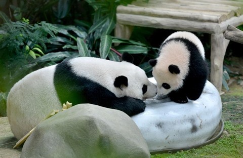 | Deux bébés pandas géants du zoo national de Kuala Lampur le 4 avril 2017, symboles des relations entre la Malaysie et la Chine. |