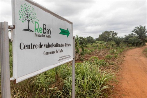 | L'entrée du Centre de valorisation des déchets lancé par la Fondation ReBin dans la région de Toffo au Bénin. |