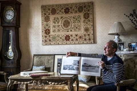 | Ahmed El Bandari, un historien et photographe égyptien, montre de vieilles photos du Caire, le 8 mars. |