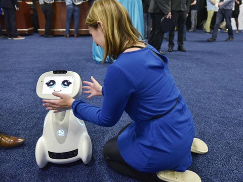 "C'est LE salon où il faut aller pour avoir une visibilité internationale", s'enthousiasme Maud Verraes, responsable marketing de Blue Frog, venue présenter le robot blanc mobile Buddy, "mélange entre une enceinte connectée, un iPad et un animal de compagnie".