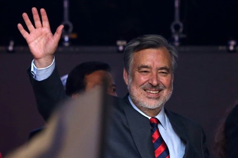 | Alejandro Guillier, journaliste et candidat socialiste à l'élection présidentielle chilienne, salue ses supporteurs à Santiago, le 19 novembre. |