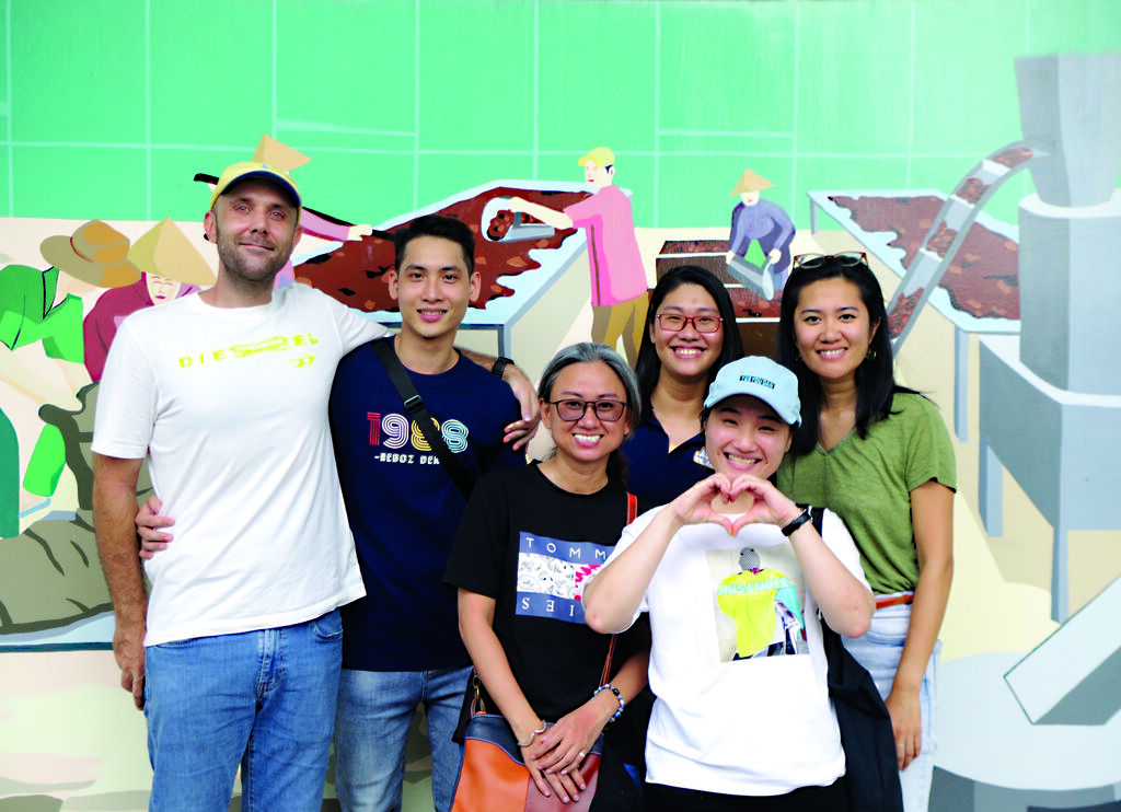 | Nguyên Thi Nga (en casquette), ses collègues et leur professeur Quentin Philippe (gauche). |