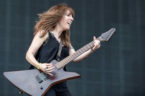 | Hélène, chanteuse du groupe Fallen Lillies, sur scène au festival Hellfest de Clisson, le 21 juin 2019. |