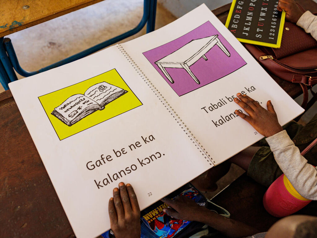 | Livre scolaire en bambara dans une école de Bamako, le 10 novembre. |