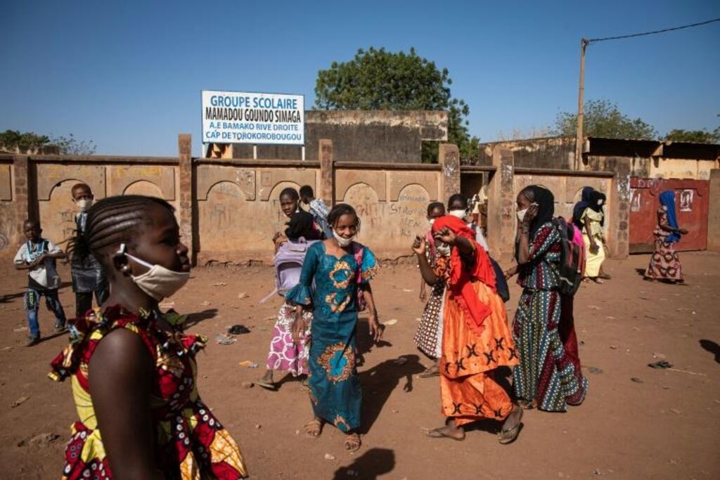 | Rentrée des classes devant une école de Bamako, le 25 janvier 2021. |