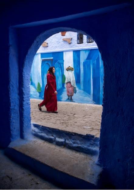 | Une femme marche dans la ville de Chefchaouen, dans le nord-ouest du Maroc, le 21 septembre. |
