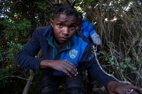 | Des migrants se cachent dans une forêt, près de la barrière séparant le Maroc de l'enclave espagnole de Ceuta, le 5 juillet. |