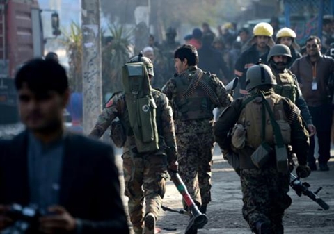 | Des soldats afghans dans les rues de Jalalabad en Afghanistan, le 13 janvier. |