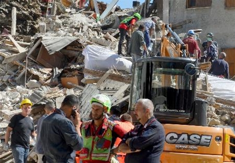 | Les recherches continuent à Amatrice, l'un des villages les plus touchés. |