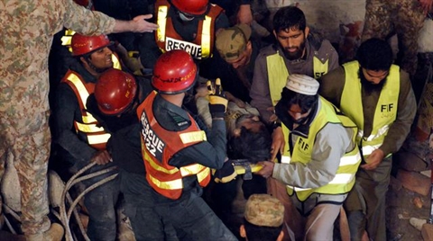 Une centaine de personnes étaient toujours prisonnières du bâtiment, a indiqué le porte-parole des services de secours, Jam Sajjad Hussain, précisant que des secouristes de districts voisins avaient été appelés en renfort.