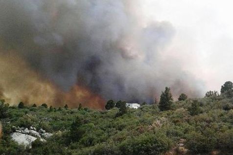| L'incendie de Yarnell Hill, dans l'Arizona, à environ 120 km au Nord-Ouest de Phoenix le 30 juin. |
