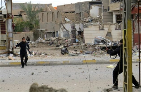 | Les forces gouvernementales et les services antiterroristes irakiens pendant une bataille contre le groupe État islamique pour reprendre le contrôle de tous les quartiers de Ramadi, le 4 janvier |