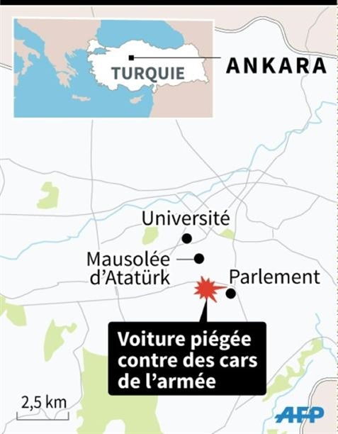 Selon le gouverneur de la capitale turque Mehmet Kiliçlar, cité par les médias locaux, cette attaque a visé des bus de l'armée près de la place Kizilay, où sont localisés de nombreux ministères, l'état-major des armées et le Parlement turc.