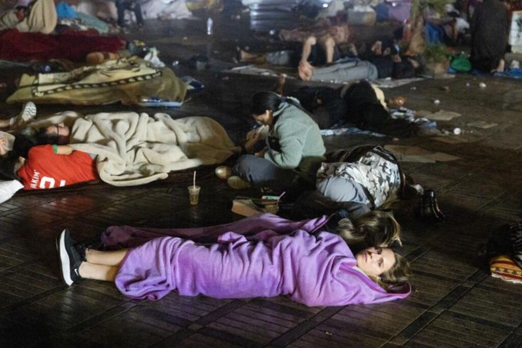 | Des personnes passent la nuit dehors sur une place de Marrakech après un violent séisme, le 9 septembre. |