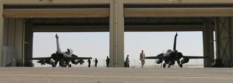 | Un Rafale de l'armée française sur le tarmac d'une base militaire dans le Golfe, le 17 novembre. |
