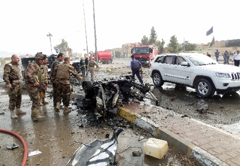 | Les soldats irakiens inspectent un lieu d’attentat le 19 avril à Kirkouk, à 255 km au nord de Bagdad. |