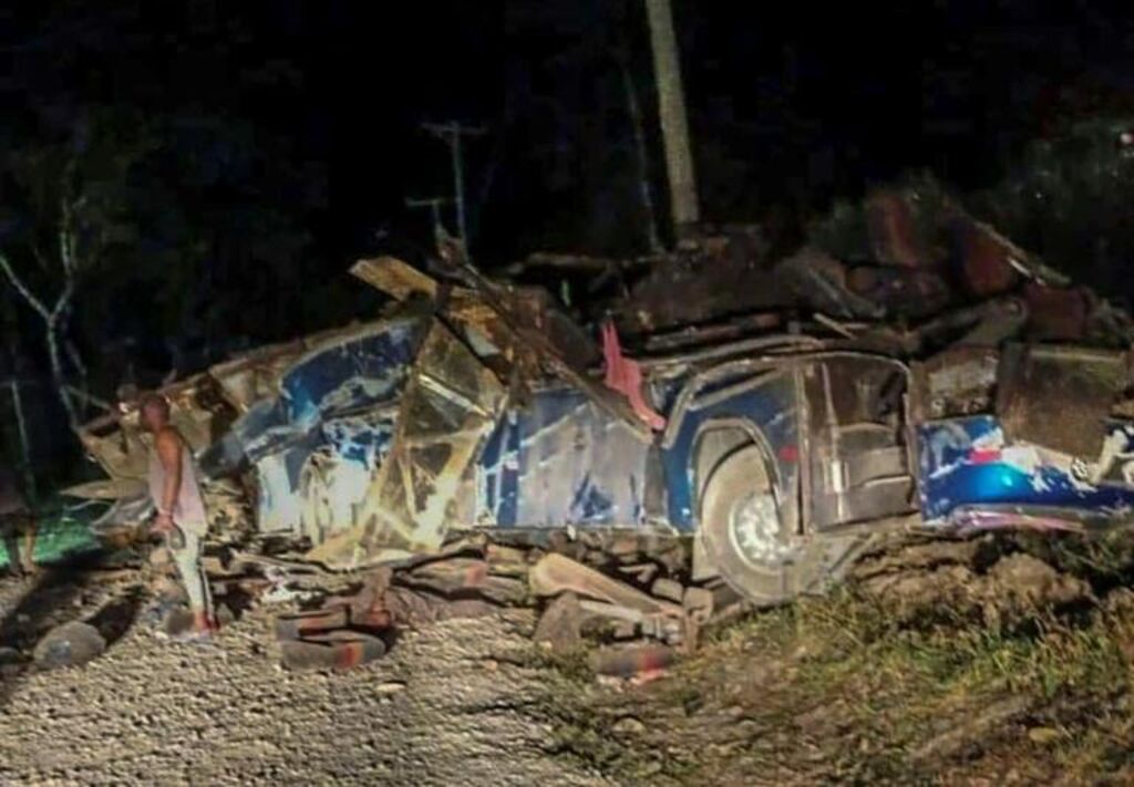 | Le bus transportant des migrants qui est entré en collision avec un minibus à Gualaca au Panama, le 15 février. |