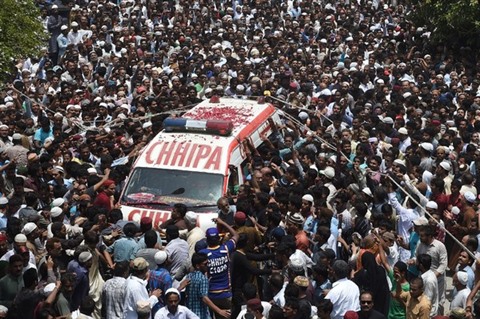 | Funérailles du musicien soufi Amjad Sabri à Karachi, le 23 juin 2016. |