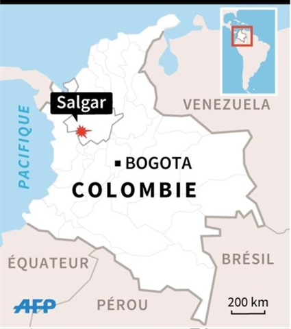 | Carte de localisation de l'éboulement en Colombie qui a fait une soixantaine de morts et de nombreux disparus. |