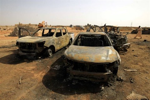 | Au site de l'explosion d'une voiture piégée dans un cimetière de Benghazi, dans l’Est de la Libye qui a fait au moins quatre morts. |