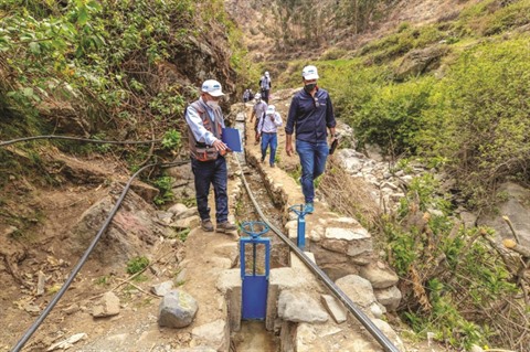 | Des experts inspectent un canal de pierre datant de l’ère pré-hispanque, à San Pedro de Casta, au Pérou. |