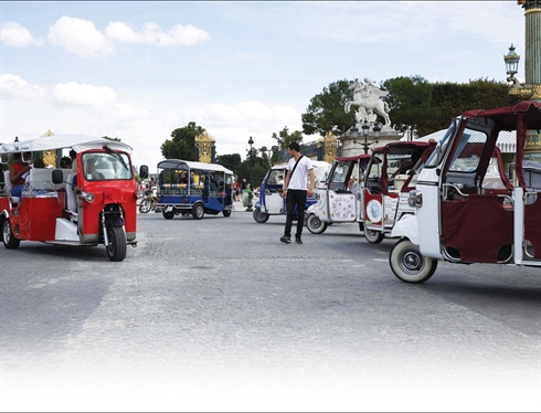 Depuis deux ans, ces tuk-tuks, engins motorisés à trois roues constitués d’un avant de scooter prolongé par une carriole recouverte d’une capote, se multiplient au pied des monuments de la Ville Lumière, de la Tour Eiffel à la place de la Concorde.