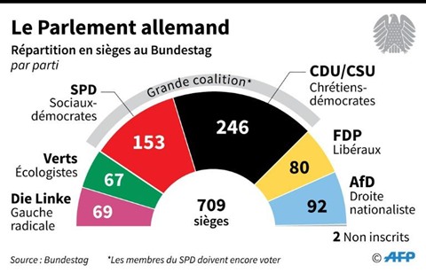 | Répartition en sièges par parti au Bundestag allemand et partis de la Grande coalition. |