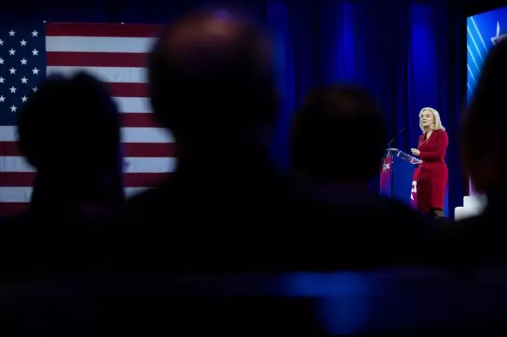 | La députée britannique Liz Truss s'exprime lors de la conférence annuelle Conservative Political Action Conference (CPAC) à National Harbor, dans le Maryland, le 22 février 2024. |