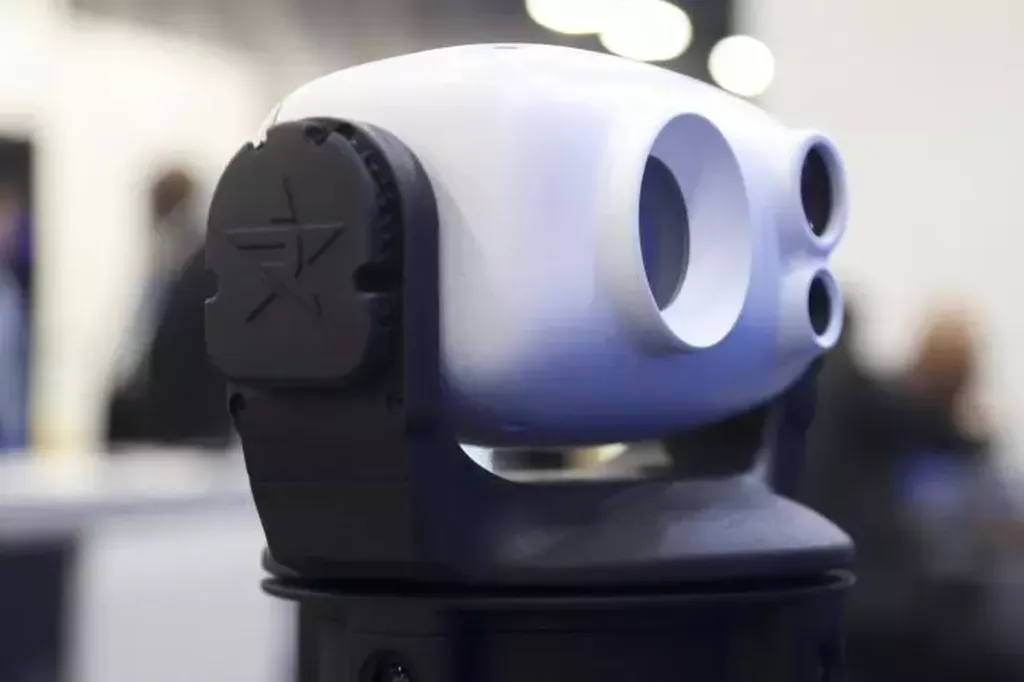 | Un robot de surveillance Star Robotics exposé au salon technologique CES à Las Vegas. |