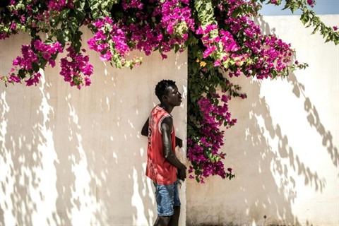 | Un jeune Sénégalais vivant habituellement dans les rues, en quarantaine dans un centre près de Dakar, 10 avril. |