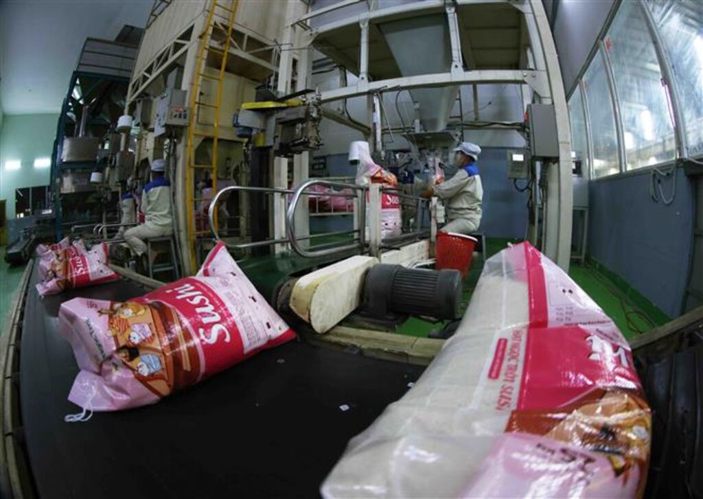 | Emballage de riz pour l'export chez le groupe Lôc Troi à An Giang (Sud). |