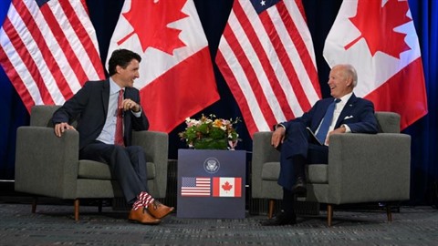 | Le président américain Joe Biden (droite) et le Premier ministre canadien Justin Trudeau lors du Sommet des Amériques, le 9 juin à Los Angeles. |