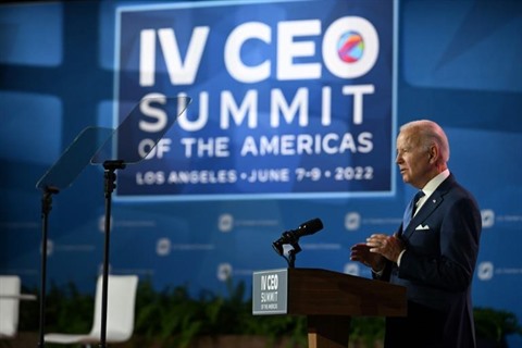 | Le président américain Joe Biden lors du Sommet des Amériques, le 9 juin à Los Angeles. |