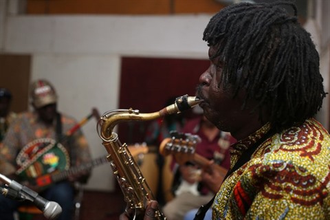 Il a donné une touche moderne aux airs de ses ancêtres avec un saxophone, des guitares et surtout son "tambo-guitare" : un alliage de la "tamboura", la lyre traditionnelle de la région, héritée de son père et d'une guitare électrique.
