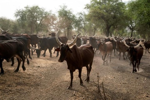 | Un troupeau de zébus près du parc national de Dinder au Soudan, le 6 avril. |
