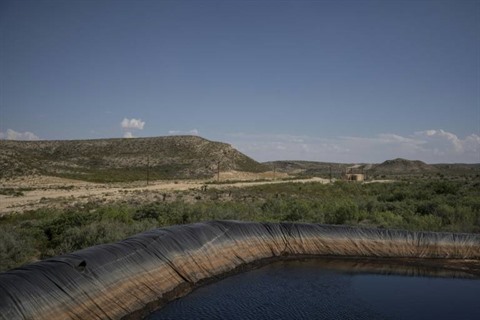 | Un bassin de fracturation hydraulique de Capitan Energy, le 7 mai à Culberson, au Texas. |