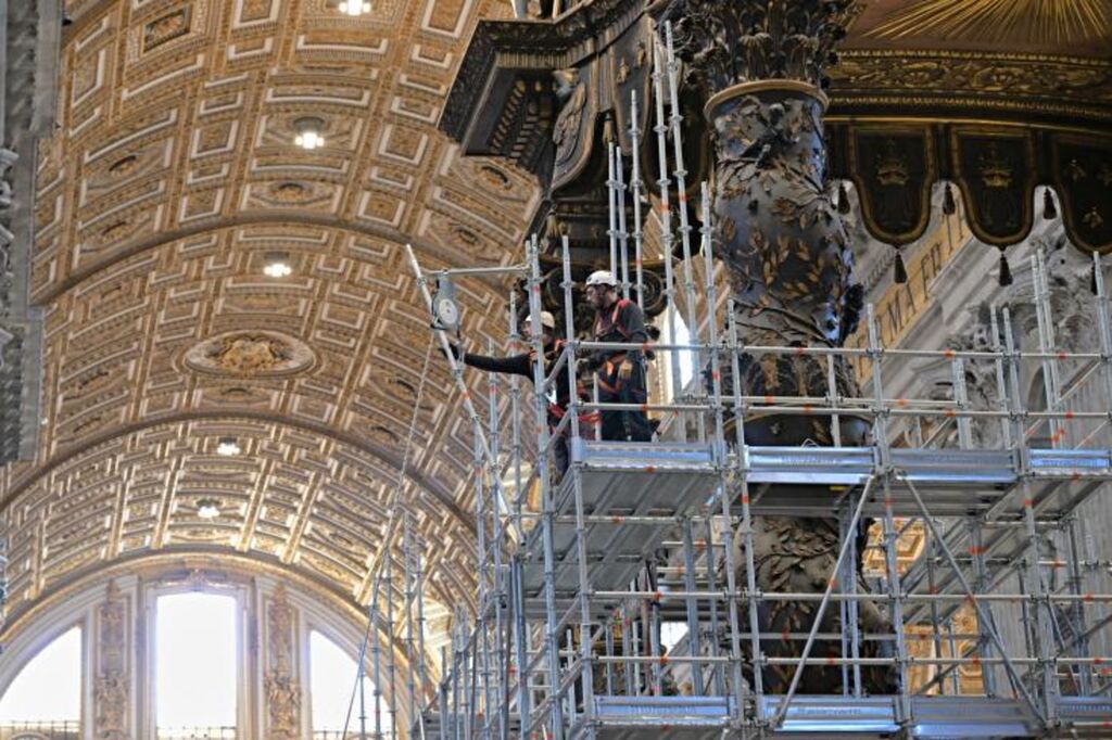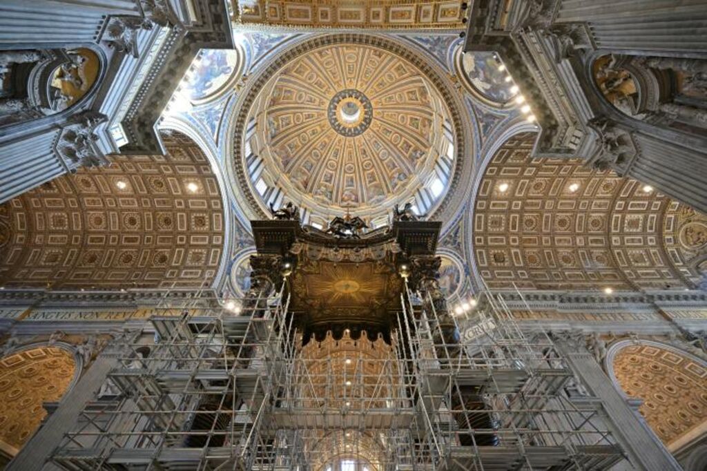 Sous les ors de la majestueuse coupole de Saint-Pierre, une douzaine de personnes sont mobilisées avec pour objectif d'achever les travaux en novembre avant le début du Jubilé de 2025, grand rassemblement mondial lors duquel plus de 30 millions de pèlerins sont attendus.