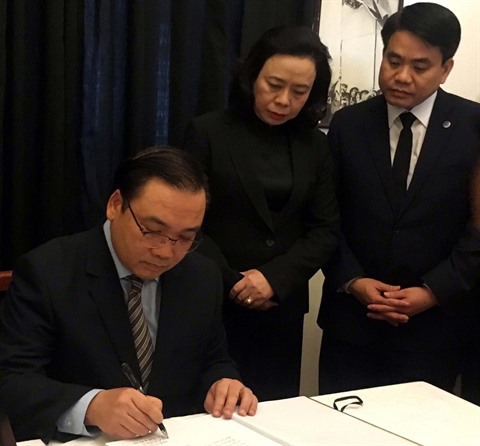 Une délégation dirigée par le membre du politburo, secrétaire du Comité du Parti de Hanoï, Hoàng Trung Hai, est venue le 28 novembrer à l’ambassade de Cuba à Hanoï se recueillir et présenter ses condoléances les plus attristées au Parti communiste de Cuba, à l’État, au gouvernement et au peuple cubains, ainsi qu'aux membres de la famille du camarade Fidel Castro.