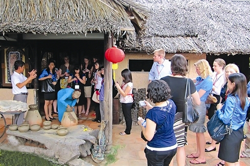 | Les maisons et ateliers d’artistes accueillent des touristes, peintres, étudiants en beaux-arts étrangers qui souhaitent étudier la culture traditionnelle du Vietnam. |