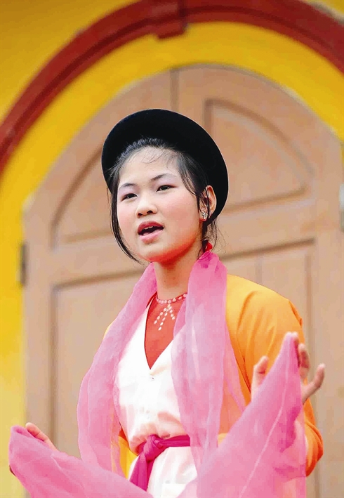 | Hoàng Mai Trang, 13 ans, a appris à chanter le chèo dès l'âge de 5 ans. |