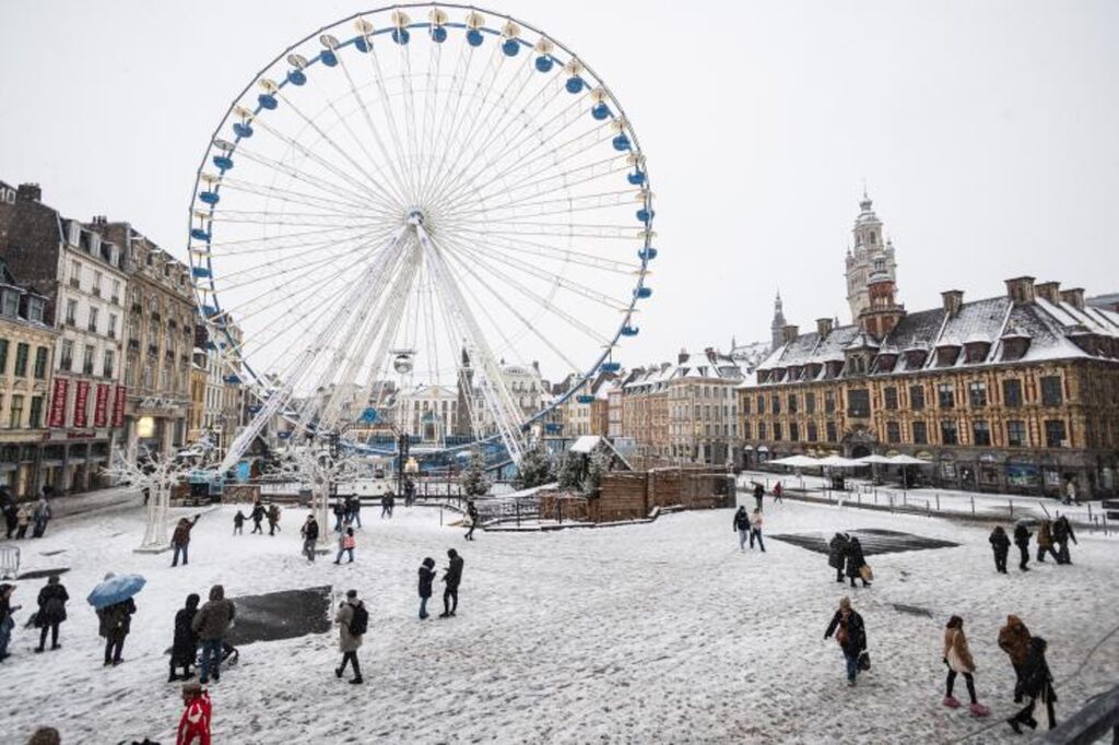 | La Grand'Place de Lille sous la neige, le 17 janvier dans le Nord. |