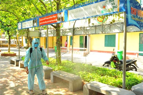 | Désinfection dans une école primaire à Ninh Binh (Nord). |
