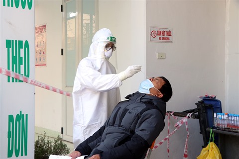| Le prélèvement d'échantillons pour le test de dépistage de COVID-19 à Hai Duong (Nord). |