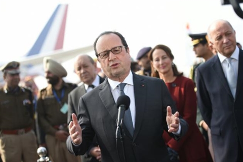 | Le président François Hollande à son arrivée le 24 janvier à Chandigarh en Inde. |