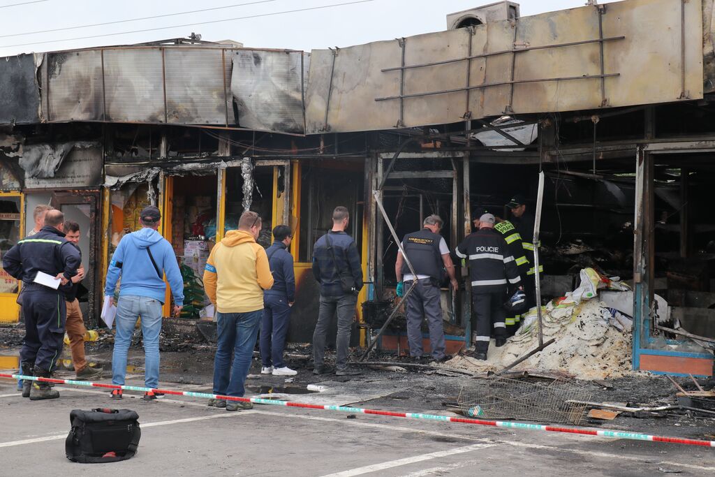 La police et les bombes de Prague bloquent la zone d'incendie pour enquêter sur la cause. Selon les tests et les forces de sécurité, la source initiale peut avoir un court-circuit électrique.