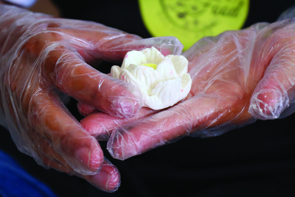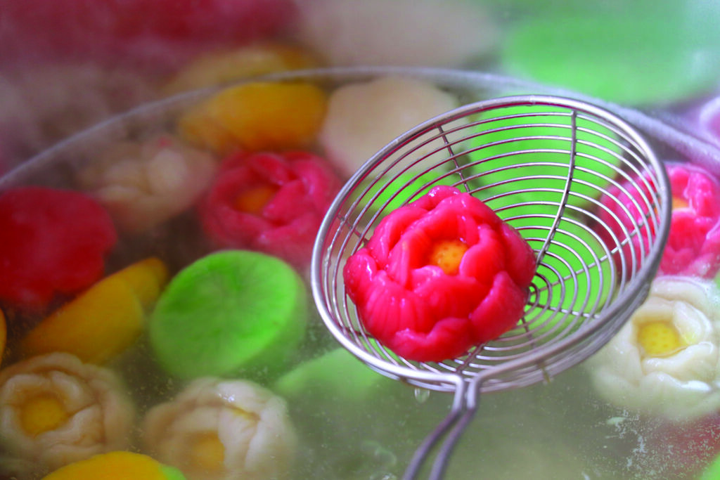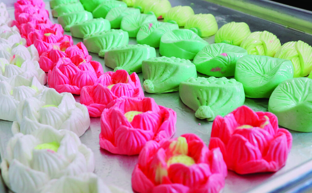 Par exemple, consciente que le chè trôi nuoc (compote liquide aux boulettes de riz) est très demandé lors des jours de pleine lune (15e jour de chaque mois lunaire) et que les Vietnamiens aiment présenter des offrandes à l’image de fleurs de lotus, notamment dans les pagodes, elle a donné un nouveau “look” à ce plat en façonnant la pâte en forme de fleurs, de feuilles et de bourgeons de lotus au lieu des boulettes traditionnelles. Selon elle, l’étape la plus difficile est le travail de la pâte pour modeler les fleurs. Uyên mélange la farine de riz gluant avec un certain nombre d’autres ingrédients pour la rendre plus souple et éviter qu’elle ne s’effrite lorsqu’elle est moulée.