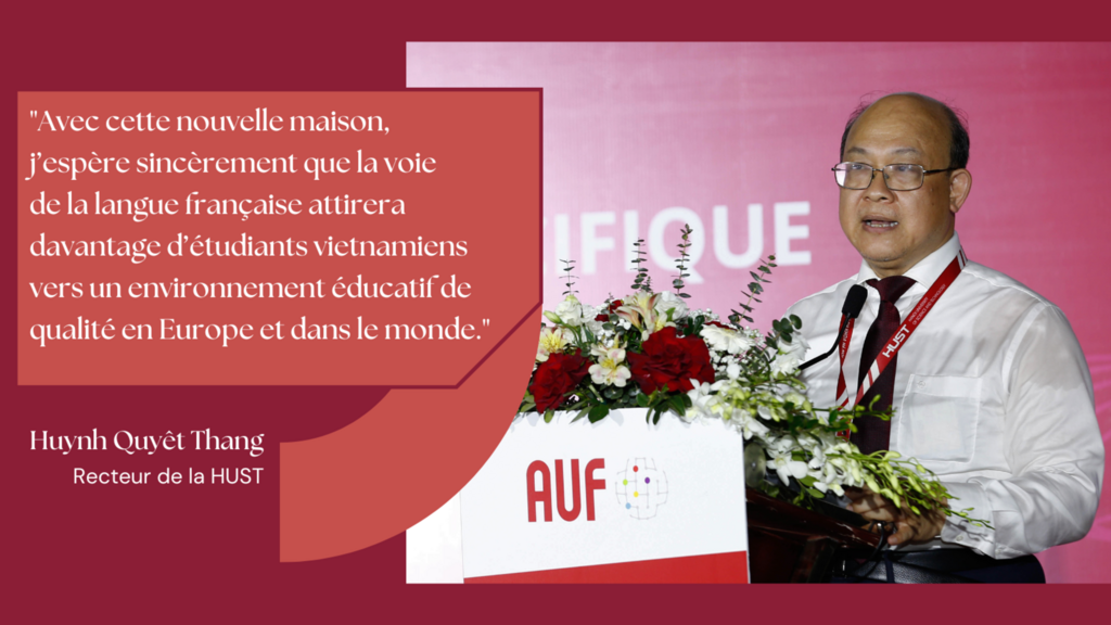 Lors de la cérémonie d’inauguration, Huynh Quyêt Thang, recteur de la HUST, s’est déclaré "très heureux" que son établissement ait été choisi par la direction régionale Asie-Pacifique de l’AUF pour son déménagement. "Je sais qu’il existe à Hanoï de nombreuses universités francophones fortes et toujours prêtes à l’accueillir dans leurs locaux", a-t-il rappelé, tout en lui souhaitant "une chaleureuse bienvenue" sous le même toit que la HUST.