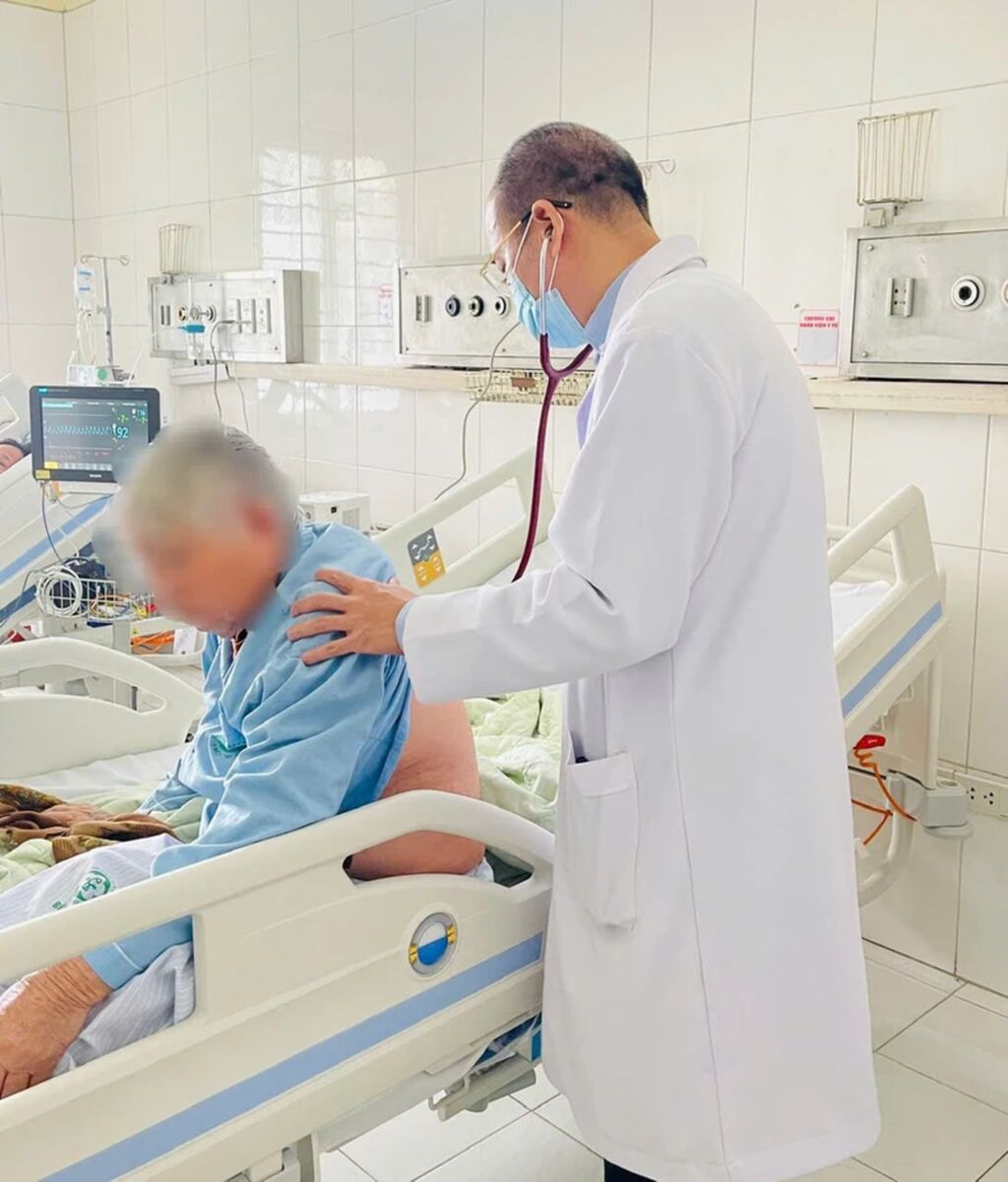 | Le Professeur associé-Docteur Dô Duy Cuong prend soin d'une personne âgée à l’hôpital Bạch Mai. |