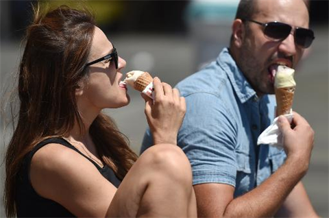 | Des personnes mangent une glace le 6 janvier 2015 à Sydney. |