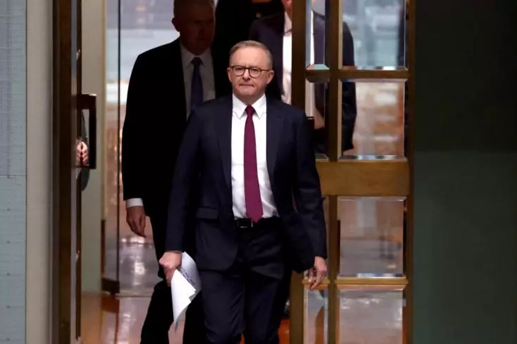 | Le Premier ministre australien Anthony Albanese entre dans la Chambre australienne des représentants, le 16 octobre 2023. |